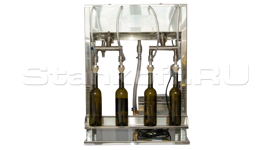 Даннный полуавтоматический аппарат позволяет производить розлив вина, водки, виски, воды, соков, масла и других жидких продуктов без газа дозировкой от 200 до 2000 мл.