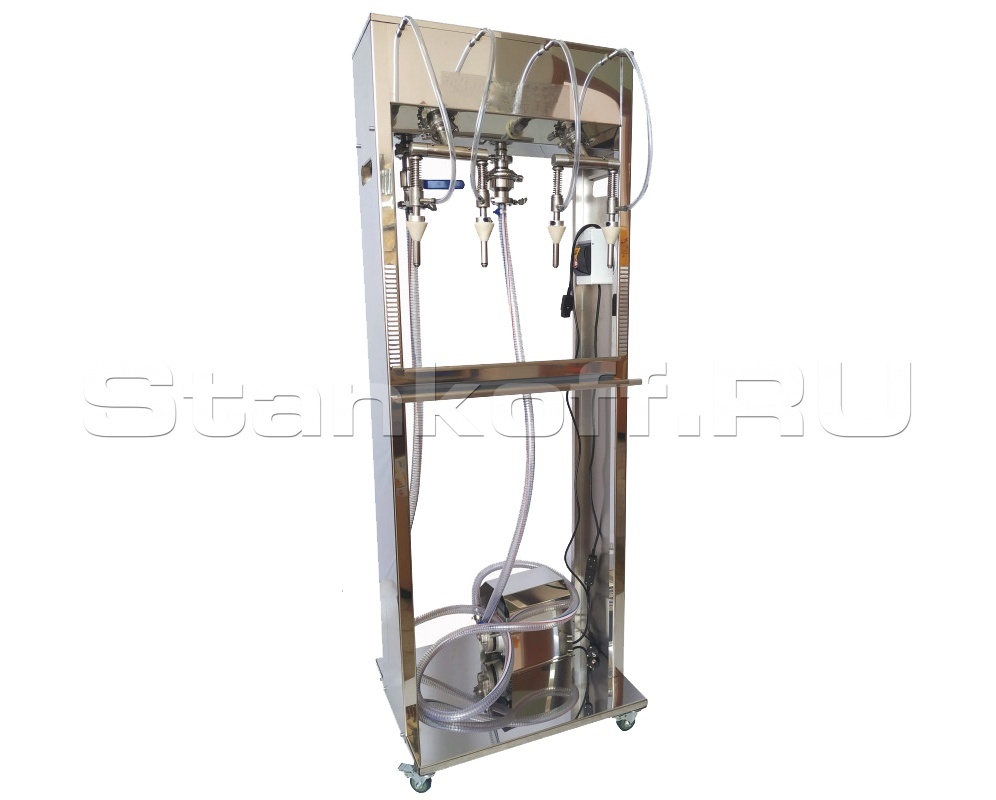 Даннный полуавтоматический аппарат позволяет производить розлив вина, водки, виски, воды, соков, масла и других жидких продуктов без газа дозировкой от 200 до 2000 мл.