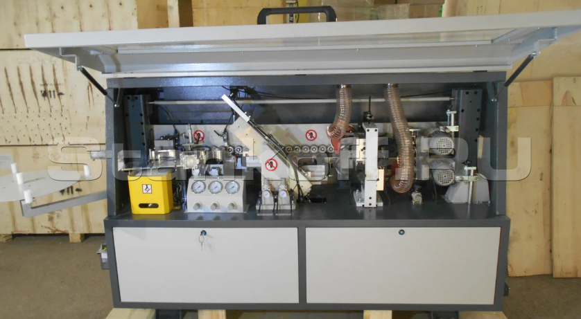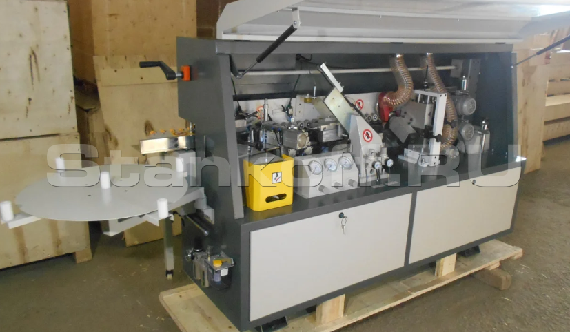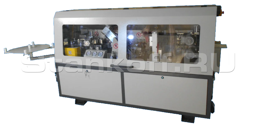 Предназначен для облицовывания прямолинейных кромок плитных материалов рулонными кромками АБС, ПВХ и полосовым кромочным материалом толщиной до 3мм.