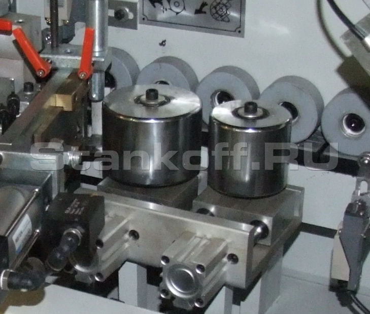 - Фрезерный блок для снятия свесов по пласти двумя твердосплавными высокочастотными фрезами по копирам с приводом от 2-х высокочастотных моторов;