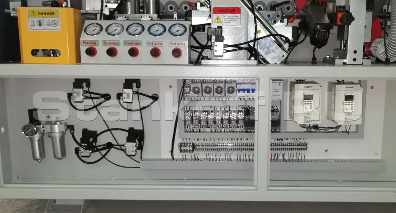 - Пневматическая пресс-группа для надёжного прижима наклеенной кромки к заготовке