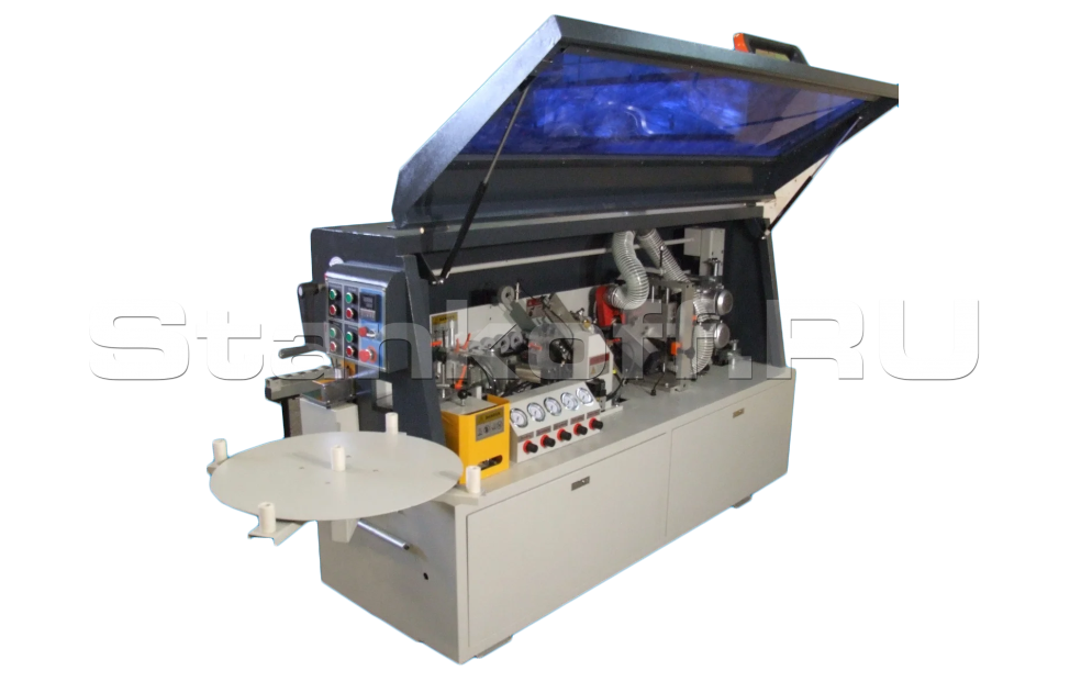 Предназначен для облицовывания прямолинейных кромок плитных материалов рулонными кромками АБС, ПВХ и полосовым кромочным материалом толщиной до 2мм.