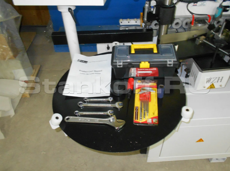 Предназначен для облицовывания прямолинейных кромок плитных материалов рулонными кромками АБС, ПВХ и полосовым кромочным материалом толщиной до 3мм.