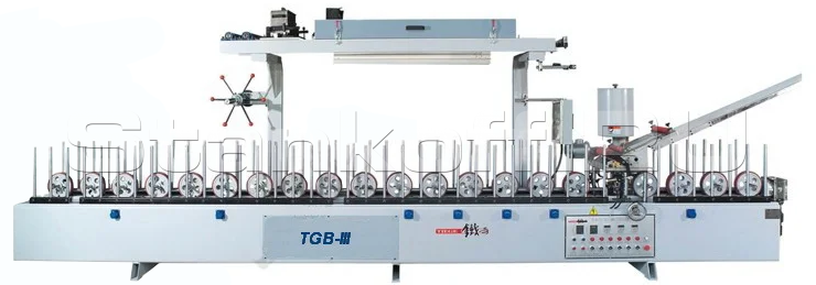Предназначен для облицовывания декоративной бумагой, натуральным шпоном и пленками ПВХ плинтуса, наличника, элементов дверных коробок и оконных рам, перил лестниц, мебельных раскладок и других деталей из профилированной массивной древесины, клееной древесины, а также МДФ и ДСП.