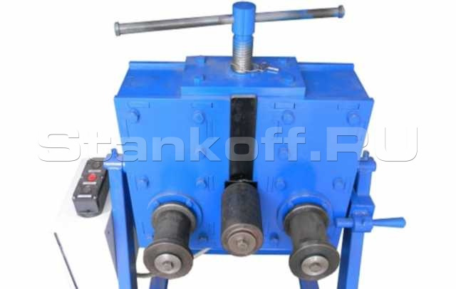 Станок используется для прокатки профильная трубы 80х40 и 100х50 стенка от 2 до 4 мм, полоса 100х8 мм, пруток до 25 мм, круглая труба до 76х3.5 мм, швеллер 100 мм, мин. радиус прокатки 300 мм. Комплектуется роликами для прокатки профильной трубы шириной 105 мм.