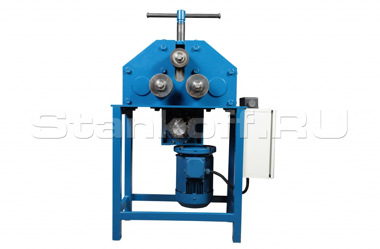 Станок используется для прокатки по радиусу прямоугольной трубы до 60х60, полосы, прутка минимальный радиус гиба 150 мм. Комплектуется роликами на большую ширину прокатки 42 мм и 82 мм. Станок отлично подходит для различного производства. Так же возможно укомплектовать роликами под любую круглую трубу до ф57.