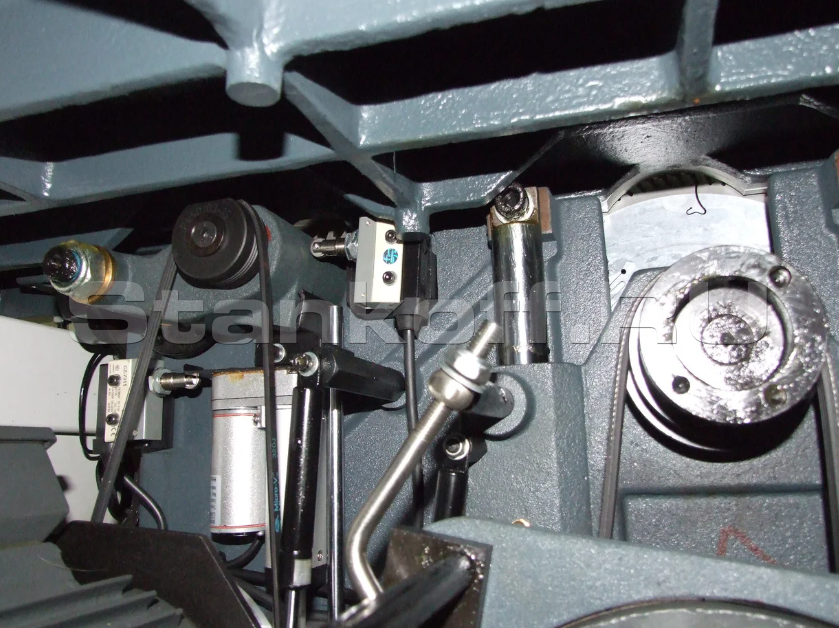 Длинная алюминиевая каретка и широкий поперечный стол позволяют устанавливать и перемещать относительно пильного механизма листы большого формата. Пильный механизм включает в себя два режущих узла основную пилу и подрезную пилу. Подрезная пила имеет попутное вращения относительно подачи заготовки и за счет предварительного реза позволяет раскраивать ламинированные листы ДСП без появления сколов.