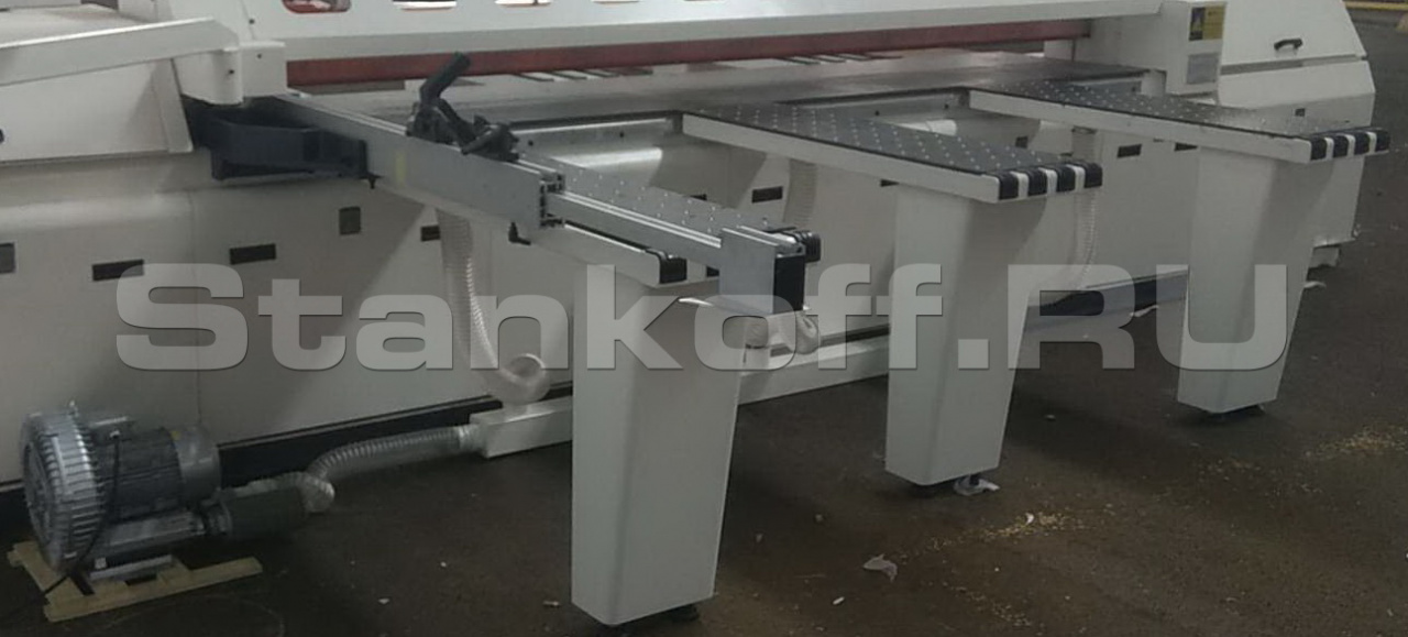 Главным преимуществом станка по сравнению с обычными форматно-раскроечными станками с ручным перемещением каретки является то, что занимая одинаковую производственную площадь, он обеспечивает трехкратное увеличение производительности.