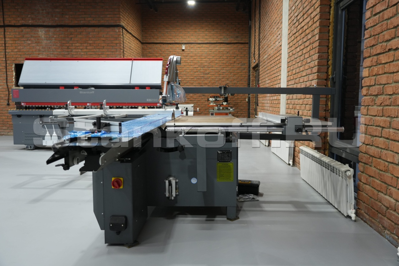 Форматно-раскроечный станок с наклоняемой пилой и подвижной кареткой на роликовых направляющих. Предназначен для штучного и пакетного раскроя плитных материалов, в т.ч. облицованных ламинатом. Станок спроектирован для использования в тяжелых условиях работы, отлично зарекомендовал себя в условиях крупносерийного и массового производства. Применяется в серийном мебельном и столярном производствах для изготовления корпусной мебели.