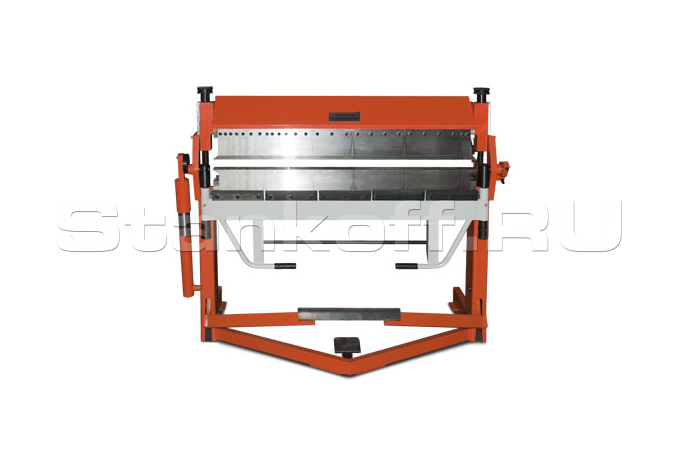 Станок без ограничения глубины подачи листа. Наличие ножного привода позволяет оператору быстро выполнять поворот и перемещение заготовок. Стальная конструкция гарантирует необходимую жесткость и устойчивость станка при ежедневном использовании. Конструкция станка имеет вертикальный ход прижимной балки, что позволяет фиксировать заготовки с строго параллельными поверхностями и более сильным прижимом по всей длине станка, в сравнении с обычными осевыми прижимами. Система пружин гибочной балки облегчает работу оператора на станке. Станок оснащён регулировкой толщины листа и ограничителями угла гиба.