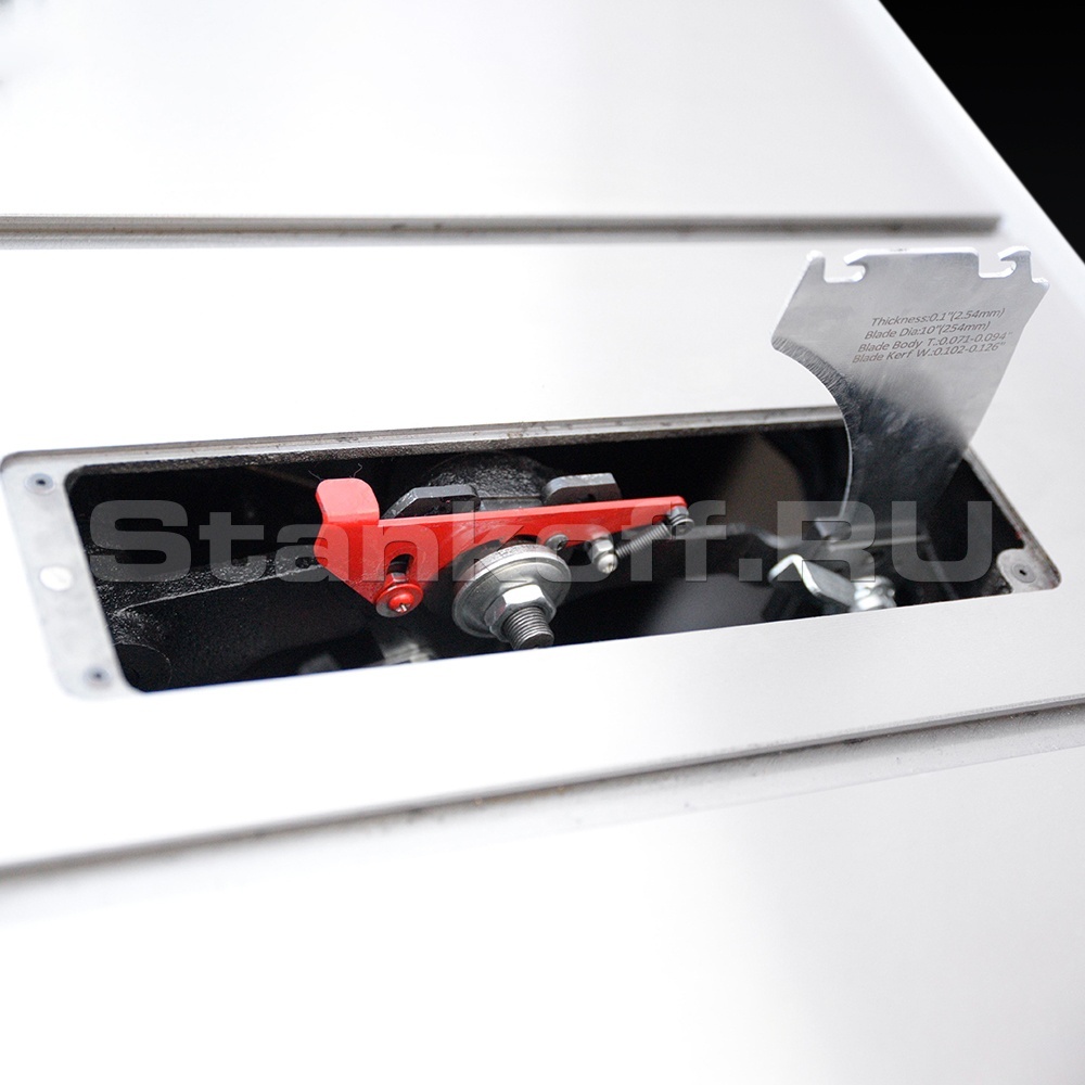 - Защита пильного диска с расклинивающим ножом и защитой от отбрасывания заготовок