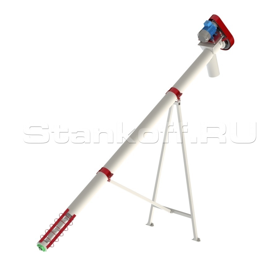 Транспортер секционный шнековый предназначен для перемещения зерна и сыпучих материалов в горизонтальном, наклонном направлениях. Возможность забора сырья из бурта.