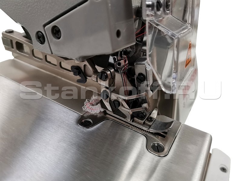 Высокоскоростной промышленный двухигольный пятиниточный оверлок со встроенным мотором, с позиционированием иглы, плавным набором скорости, есть подсветка поля шитья. Предназначен для стачивания деталей швейных изделий из трикотажных, хлопчатобумажных, шерстяных, шелковых, льняных и синтетических материалов с одновременной обрезкой края.