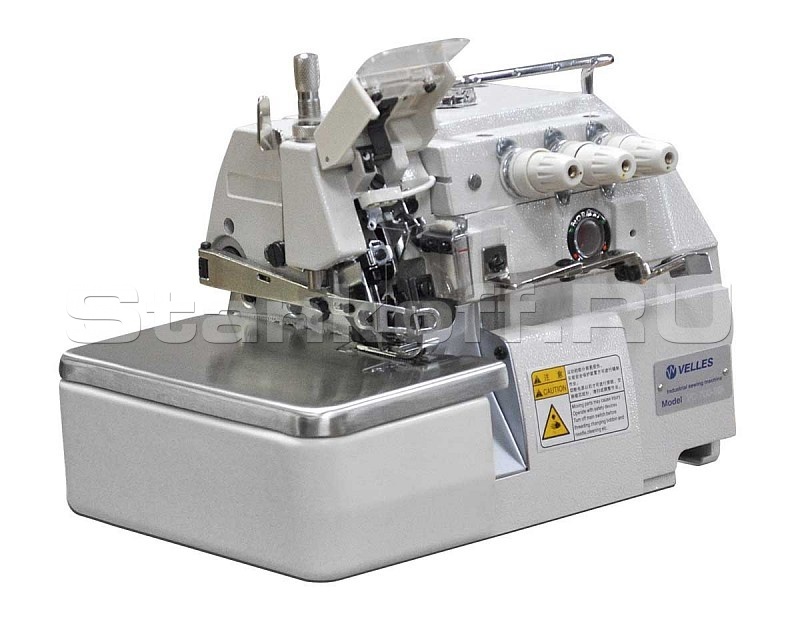 3-ниточная стачивающе-обметочная машина для легких и средних материалов с прямым приводом. Длина стежка -1-3,6 мм, ширина обметки -4 мм, дифференциал -0,7 –2. Макс. скорость шитья -6500 ст./мин. Укомплектована встроенным в головку двигателем. Снабжена подсветкой поля шитья.