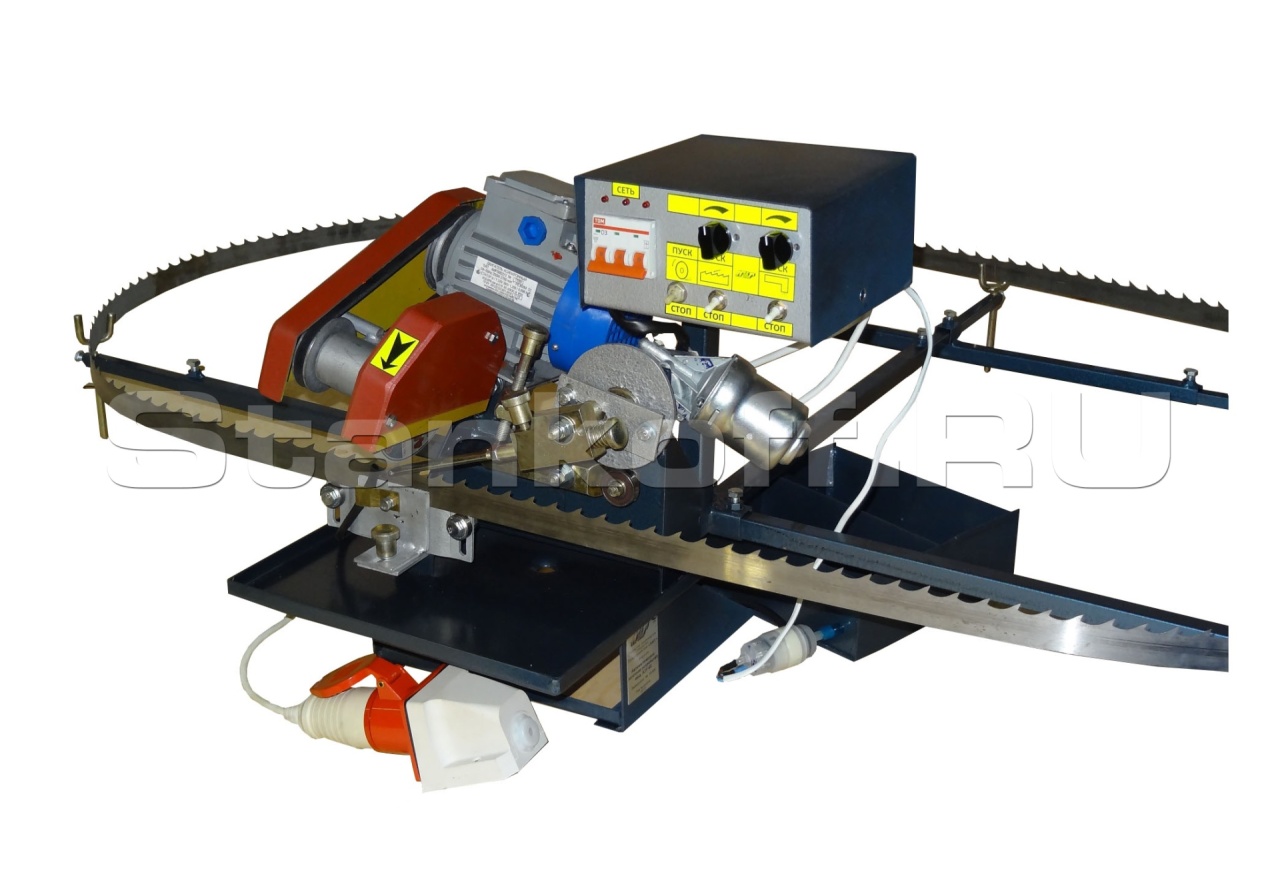 Станок предназначен для заточки ленточных пил любой формы зуба отечественного и импортного производства в автоматическом режиме. аточка производится по всей поверхности зуба, с разделенной регулировкой величины снимаемого припуска по передней и задней поверхности с использованием СОЖ или без нее. Скорость подачи ленточной пилы в зону заточки плавно регулируется.