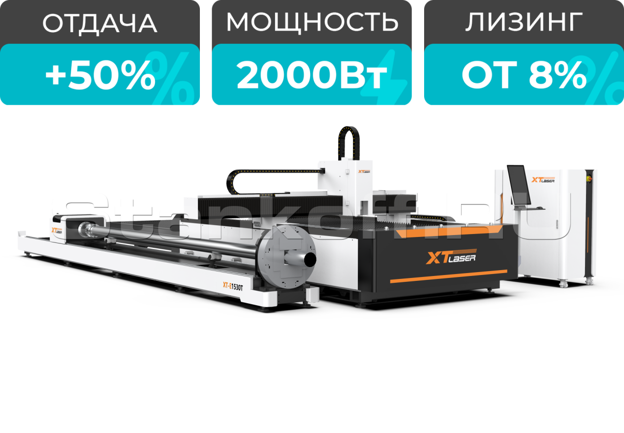 Оптоволоконный лазер для резки листового металла и труб со сменным столом XTC-1530ET/2000 Raycus/Reci