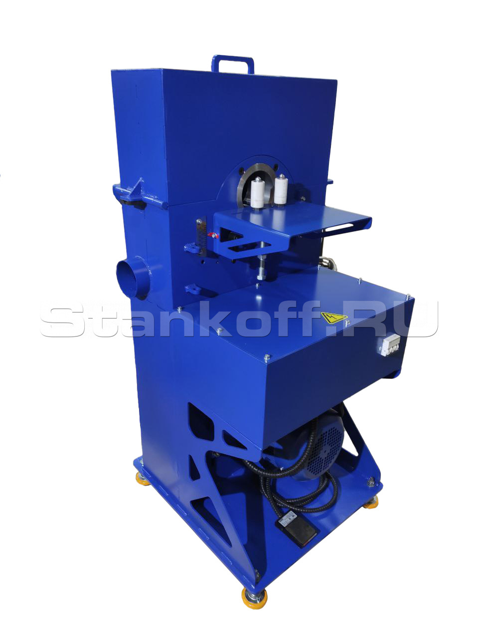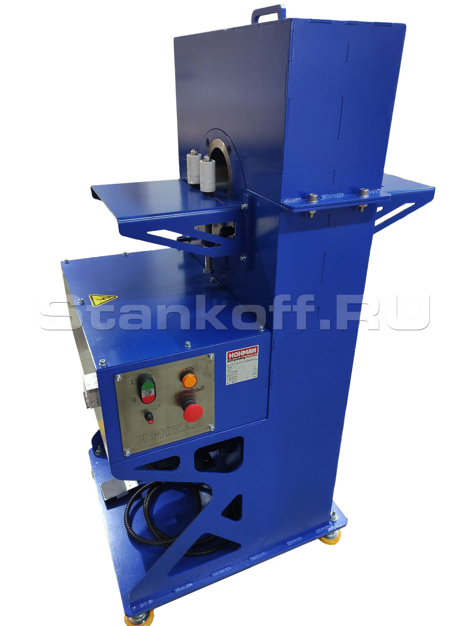 Станок для шлифовки и полировки труб диаметром от 10 мм до 110 мм прямой и изогнутой формы круглого, овального, эллиптического и прямоугольного сечения. Материал обрабатываемых деталей: черная и нержавеющая сталь, алюминий, латунь и др. металлы. Планетарный принцип работы станка, выполняет одновременное вращение вокруг заготовки шлифовальных лент и приводного диска, таким образом достигается отличное качество обработки поверхности детали при шлифовке и полировке. Скорость вращения ленты регулируется частотным преобразователем.