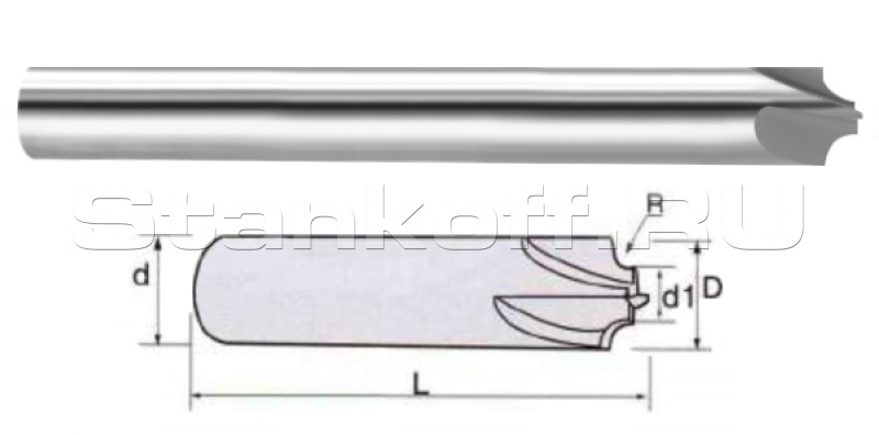 Фреза четырехзаходная K4CRC40.5 для скруглений применяется для снятия радиусных фасок по кромке детали. (Медь, Латунь, Алюминий)