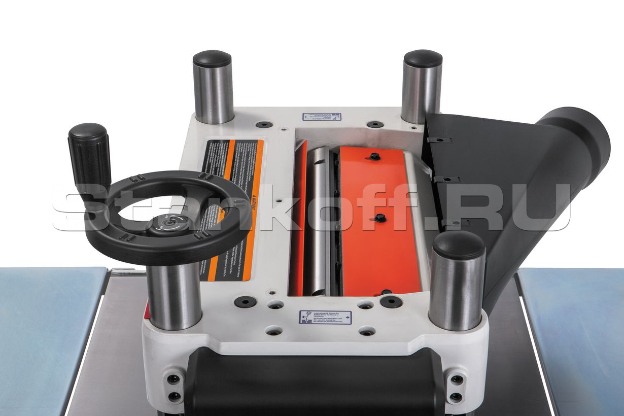 Рейсмусовый стол — литой из чугуна цельный без роликов, к нему крепятся два откидных удлинителя, выполненных из толстого стального листа. В других вариантах поставки, например, со строгальным валом helical, могут использоваться чугунные секции, жестко закрепленные болтами.