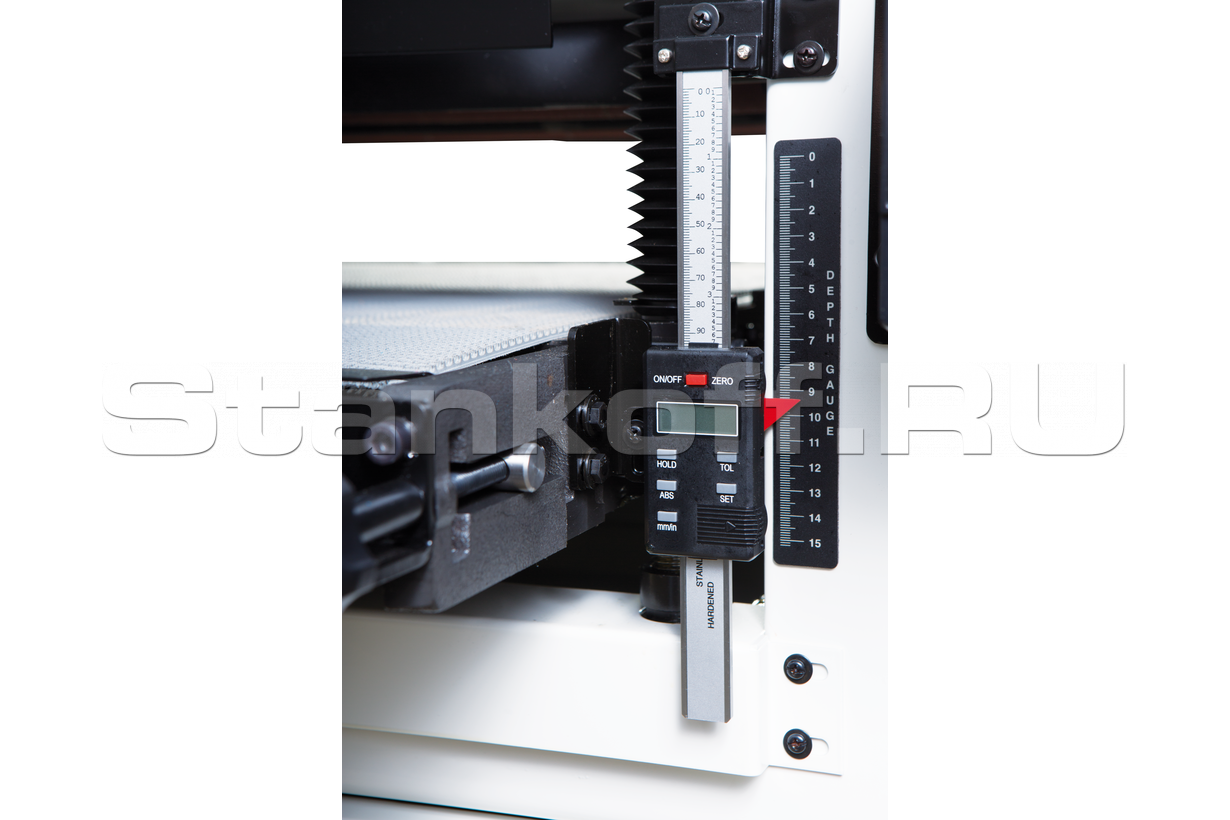 - Регулировка высоты транспортера (толщины заготовки) вращающимся маховиком