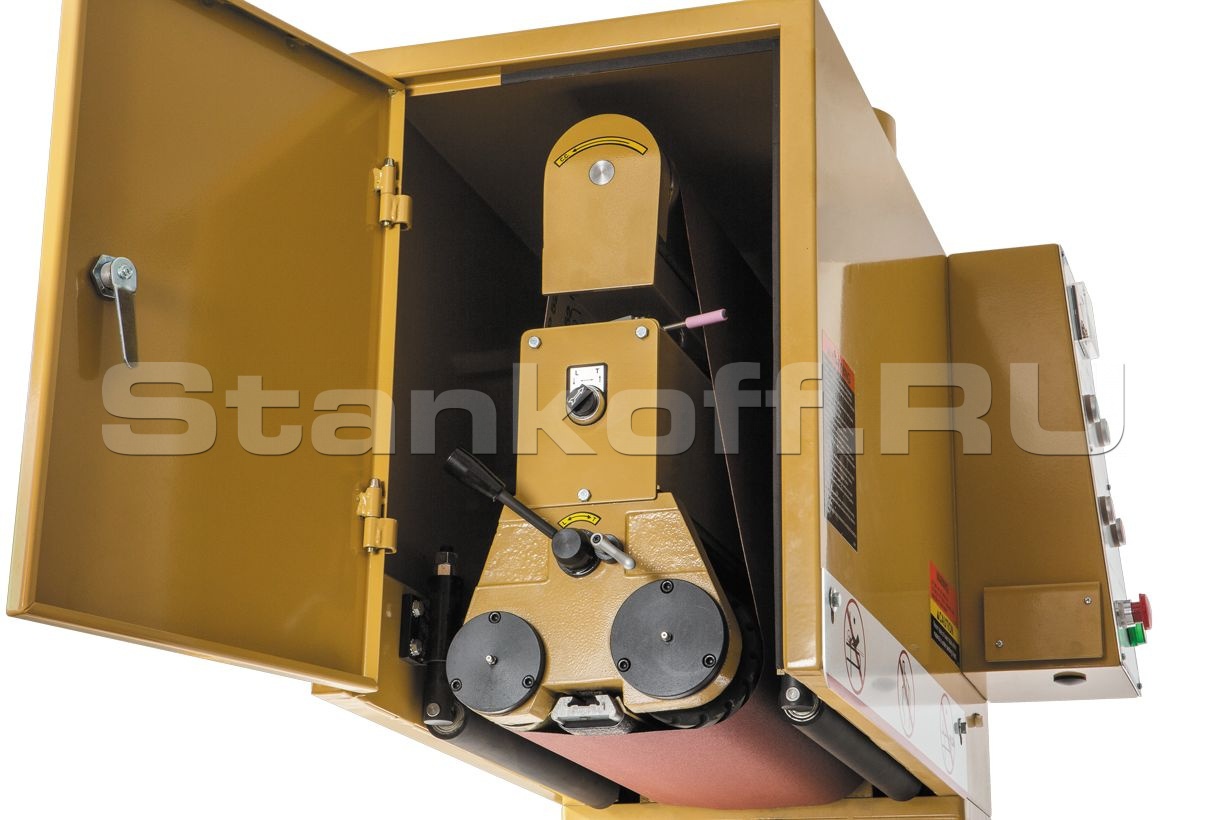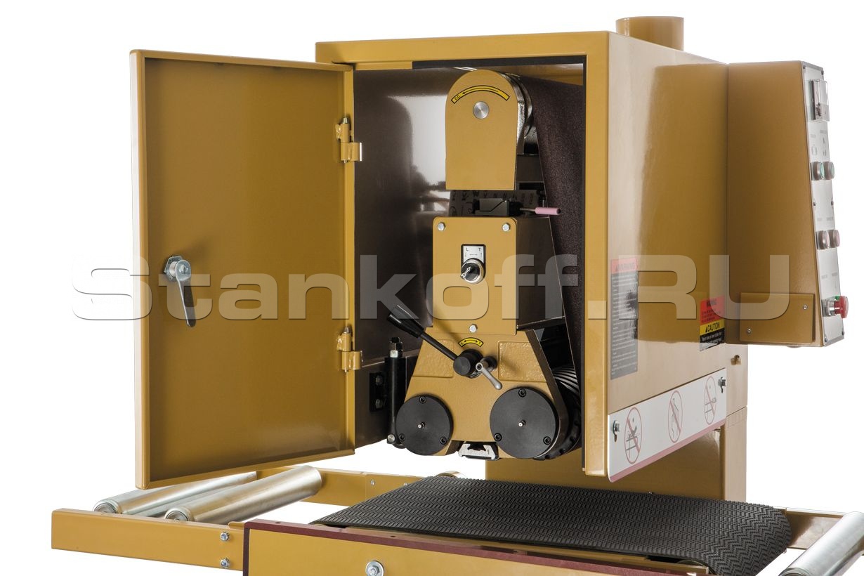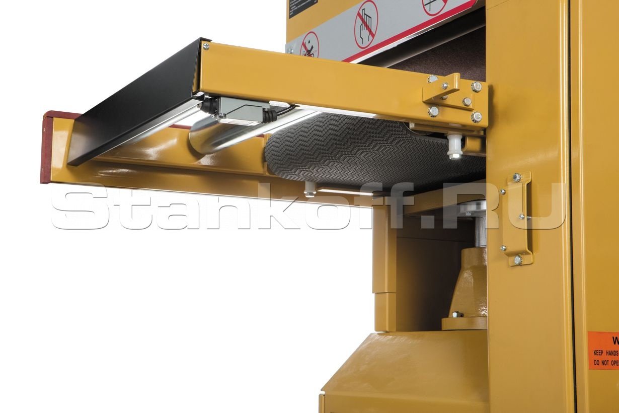 Рабочая зона ленточного шлифовального узла образована двумя обводными роликами и регулируемым «утюжком» между ними. Его высота меняется в широких пределах, что позволяет установить его ниже, выше или вровень с роликами.
