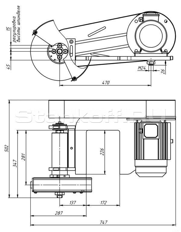 Выпускается специально для установки на два станка поочередно: 1М65 и POREBA. Она состоит из электродвигателя мощностью 3 кВт, подключаемого в электросеть токарного станка, станины, устанавливаемой на универсальном токарном станке вместо штатного резцедержателя, и скоростного шпинделя.