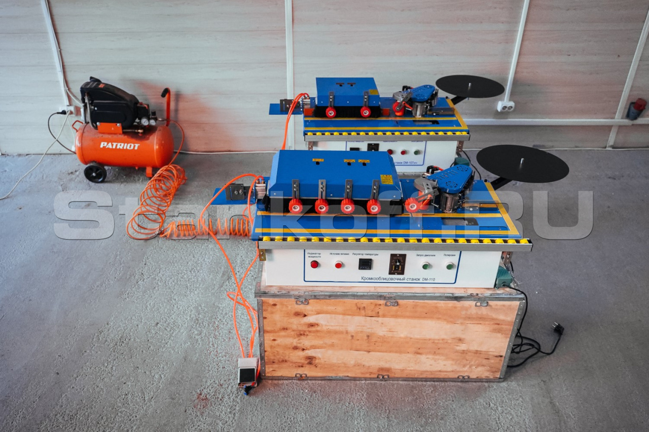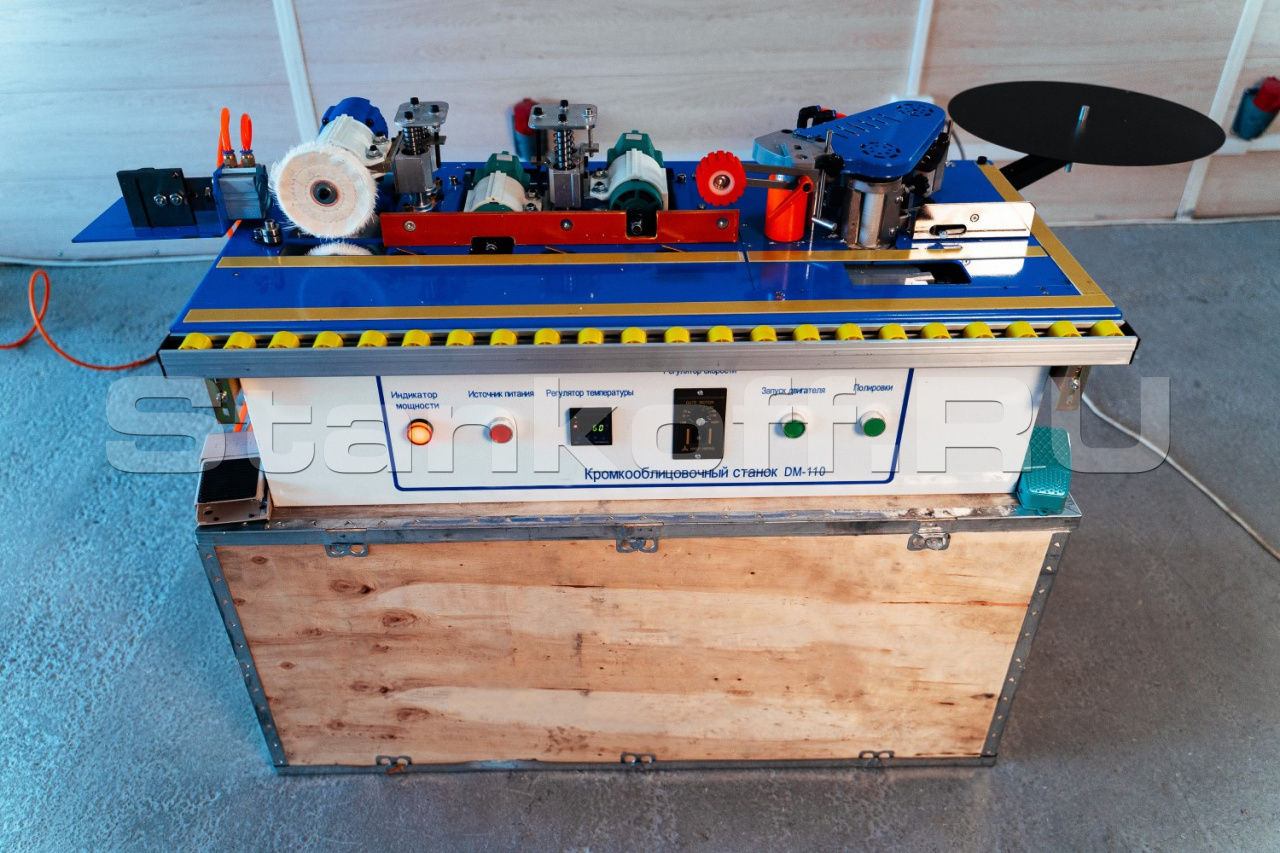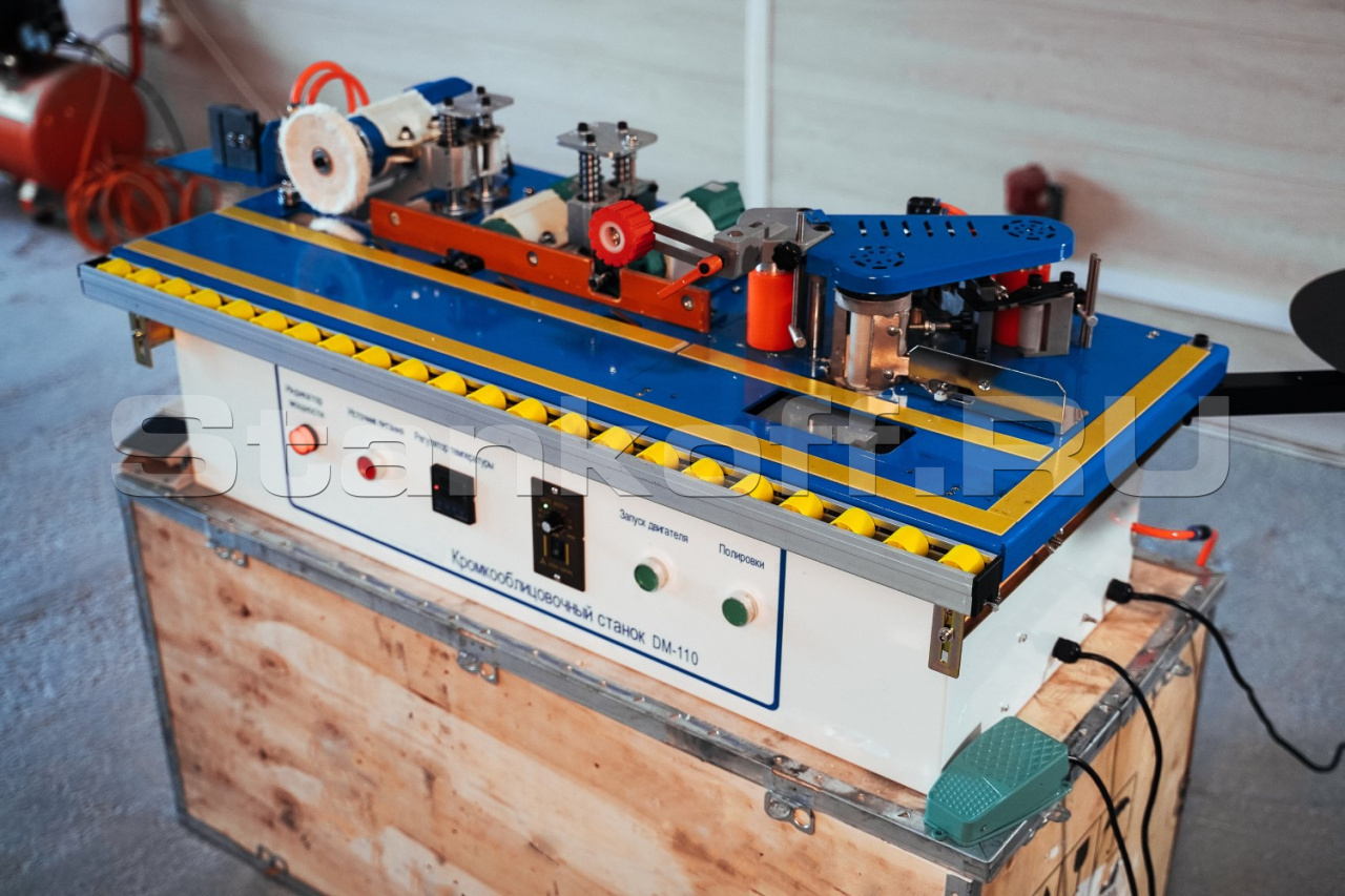 Кромкооблицовочный станок DM 110 — это мебельное оборудование для облицовывания различных мебельных заготовок с автоматической подачей кромочного материала. Работает как с натуральным шпоном, так и с синтетическими рулонными материалами.