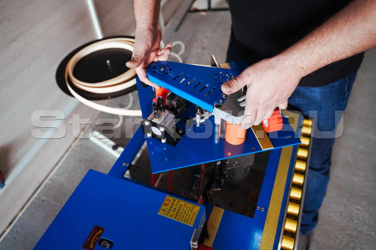 - Магазин подачи рулонного кромочного материала;
