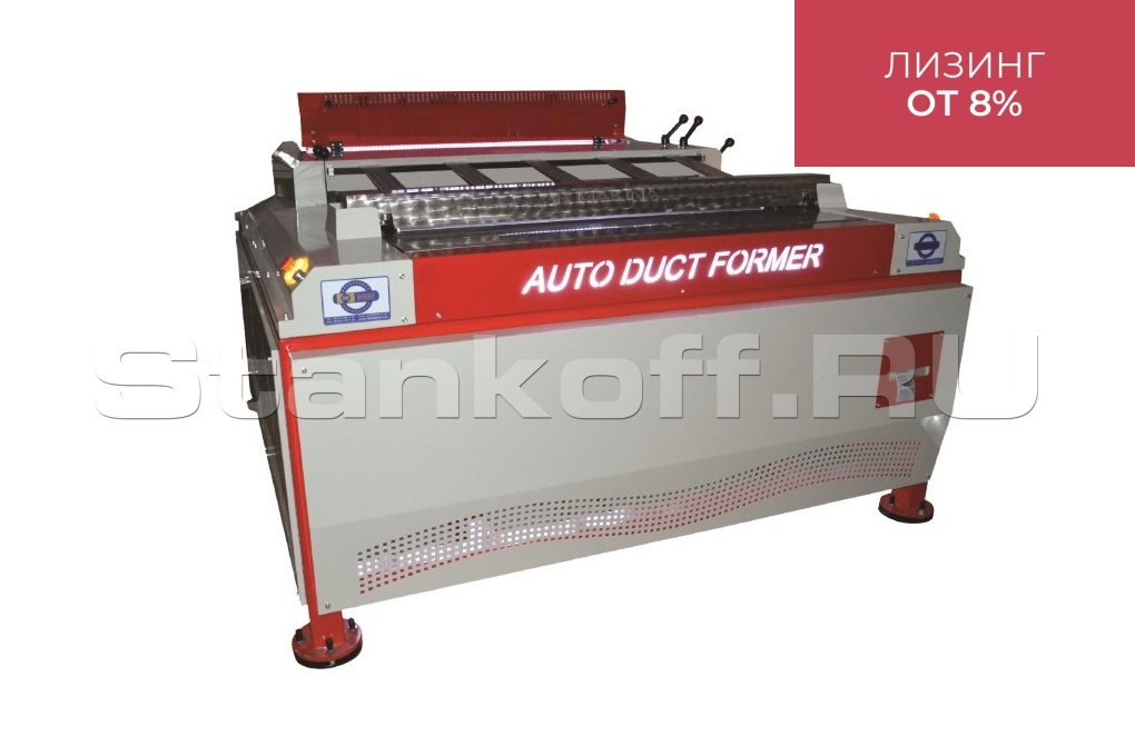 Станок имеет ЧПУ управление с PLC монитором. Максимальная ширина рулона 1250 мм. Минимальное сечение воздуховода 100 мм х 100 мм. Производительность: 180 м² в час. Податчик материала на 1 лист. В комплекте 2 разматывателя под рулоны. Станок полностью гидравлический.