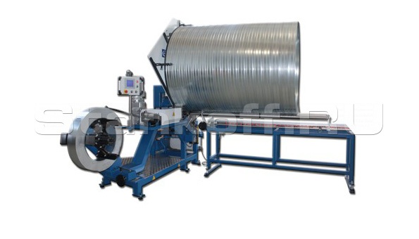 Спирально-навивной станок предназначен для производства воздуховодов желаемого диаметра и длины. Машина более экономична и проста в эксплуатации, чем аналоги. Станок имеет качественный процесс сшивания. В качестве альтернативы стандартным диаметрам можно изготавливать бесконечные трубы разных размеров. Изготовленные воздуховоды соответствуют требованиям EUROVENT и SMACNA. Процесс резки производится ножом (Slitter). Режущий блок с гидравлическим приводом. Формовка и сшивание спроектированы механически с помощью роликов. Смазка используется во время процесса сшивания.