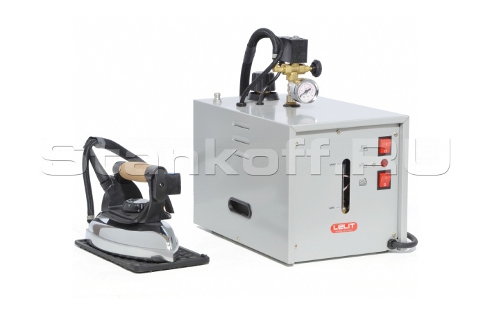 Фактический объем бойлера 3,5 литра. Бойлер из нержавеющей стали. Внешний нагревательный элемент. 4 системы безопасности: выключатель давления; термостат с чипом, контролирующим нагревательный элемент; термостат нехватки воды; предохранительная пробка бойлера с механическим клапаном. Внешний электроклапан, для регулировки подачи пара. Промышленный электропаровой утюг с нейлоновым моношлангом, вес 1,8 кг.