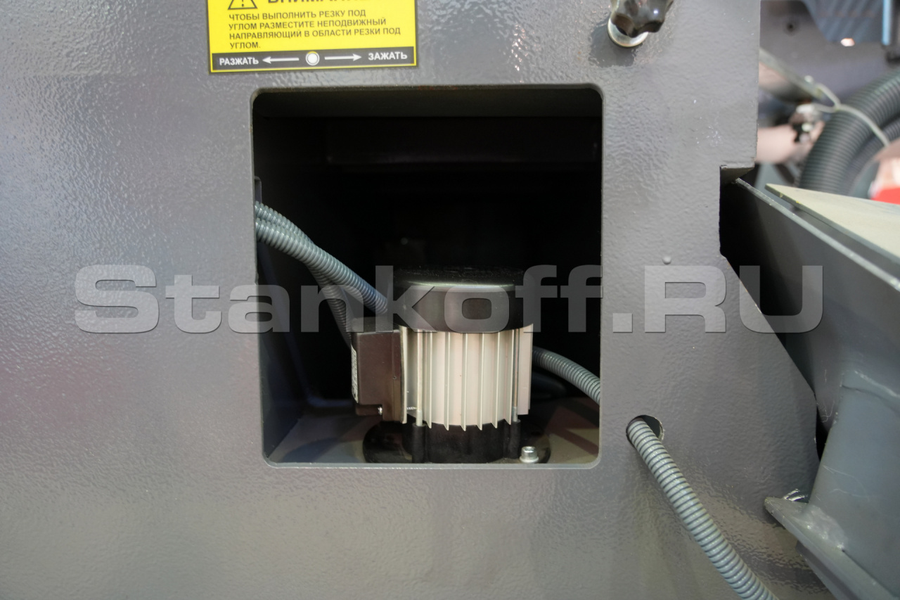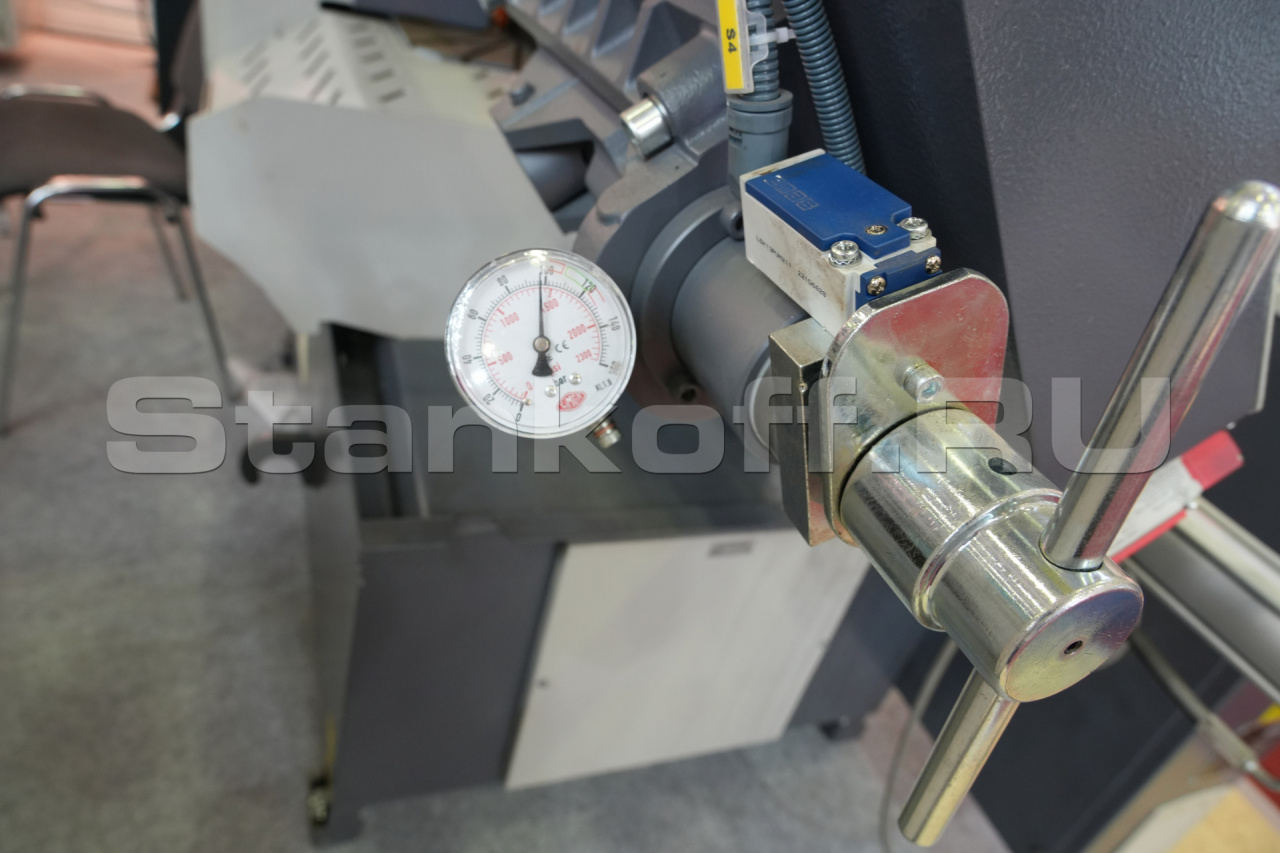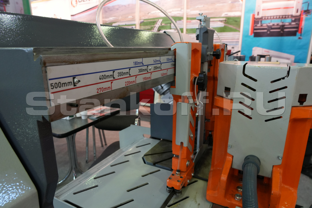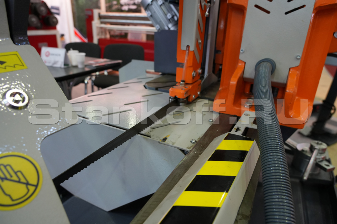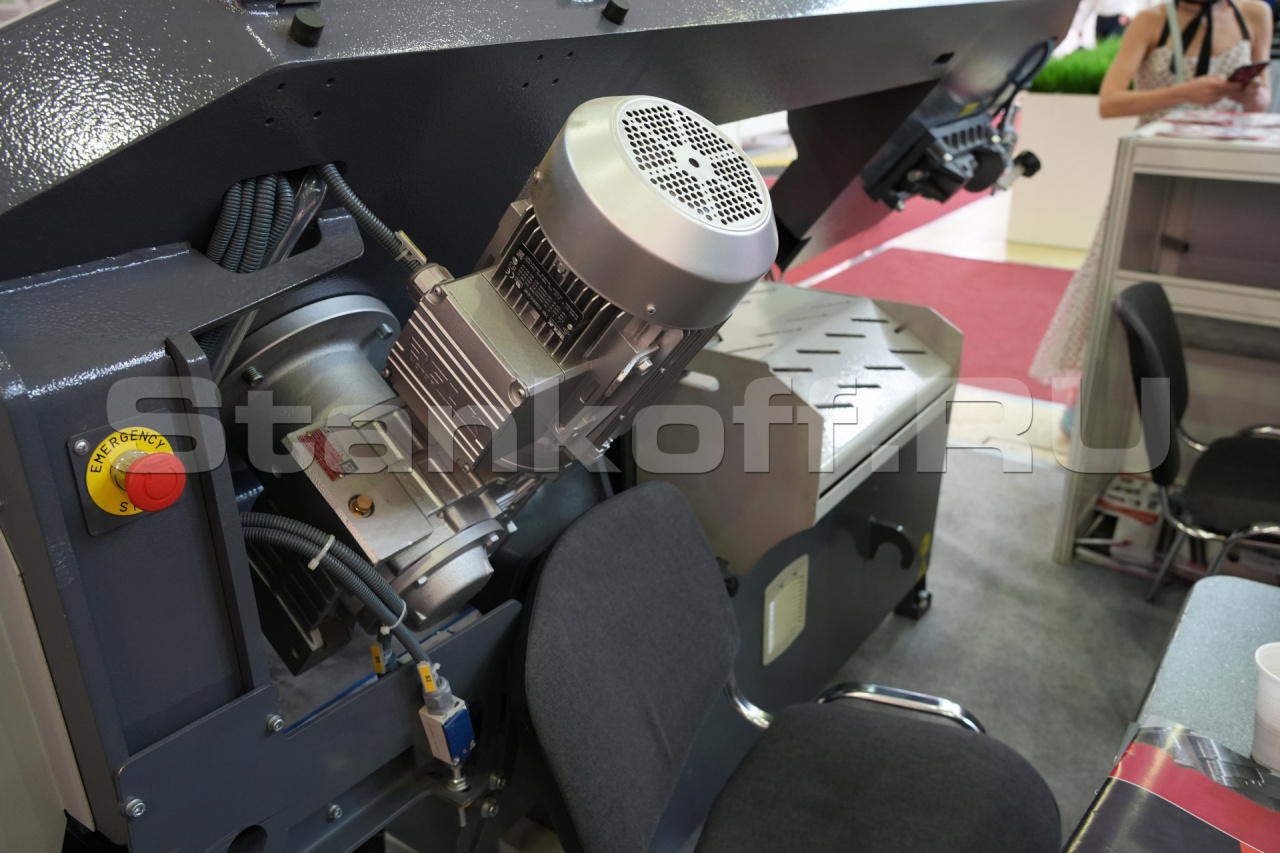 Станок своей конструкцией спроектирован таким образом, чтобы соответствовать максимальной нагрузке в условиях эксплуатации заготовительного производства. По этой причине все основные - несущие части станка изготовлены из чугуна, для придания жёсткости, устойчивости к вибрациям и ударам. Исполнение основных частей консоли, тисков и поворотного устройства из чугуна. На ленточнопильном станке установлена очищающая щётка для очистки ленточнопильного полотна. Привод ленточного полотна осуществляется через трехфазный электродвигатель с частотным преобразователем частоты для бесступенчатой регулировки скорости полотна 20 - 110 м/мин. Автоматический останов станка при обрыве ленточного полотна. Контроль открытых частей станка (при открытых элементах запуск станка невозможен). Голосовое сопровождение процесса реза. Контроллер имеет возможность задать 8 программ (длина реза, количество отрезаемых заготовок) и выстроить их в нужном Вам порядке. Гидравлические тиски. Роликовый стол. Система очистки стружки.Область применения: