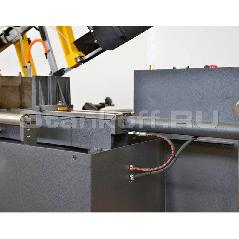 - Гидромеханическая система натяжения ленточнопильного полотна с манометром обеспечивает надёжную фиксацию рекомендуемого значения натяжения;