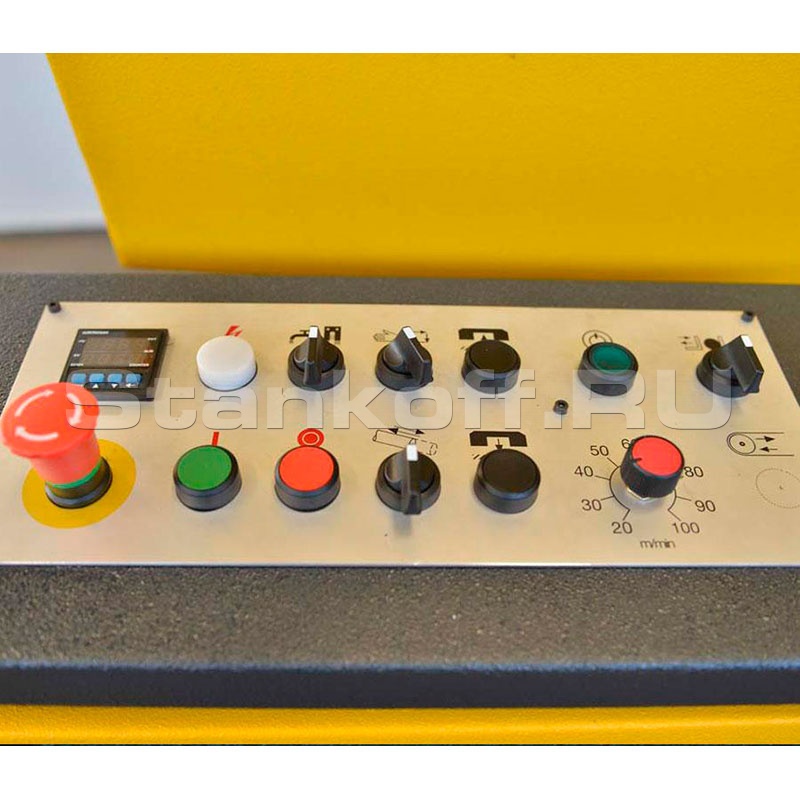 - Бесступенчатая регулировка скорости ленточнопильного полотна в стандартной комплектации. Позволяет точно настроить режимы резки под конкретную заготовку, тем самым увеличив срок службы ленточнопильного полотна