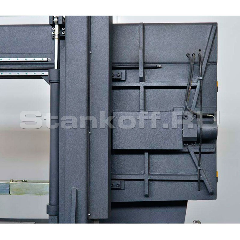 - Гидромеханическая система натяжения ленточнопильного полотна с манометром обеспечивает надёжную фиксацию рекомендуемого значения натяжения.