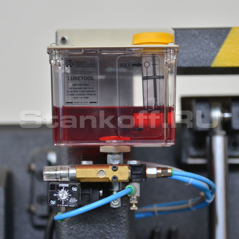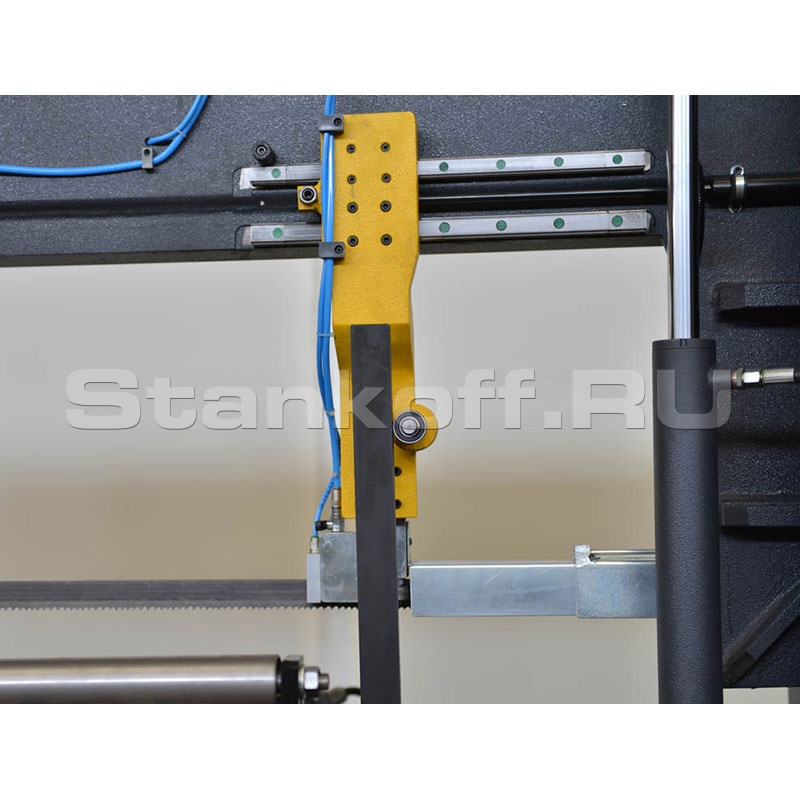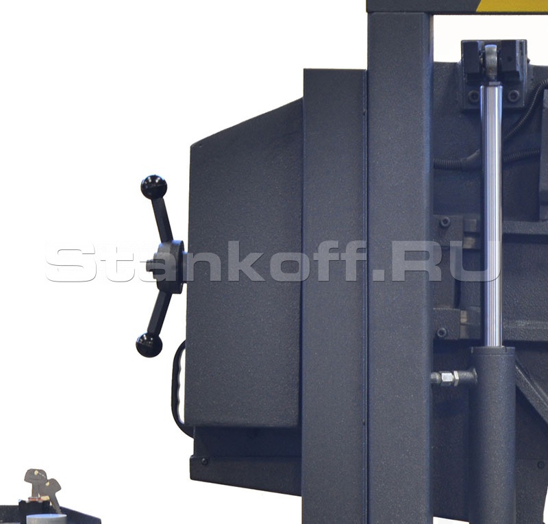 - Гидромеханическая система натяжения ленточнопильного полотна с манометром обеспечивает надёжную фиксацию рекомендуемого значения натяжения.