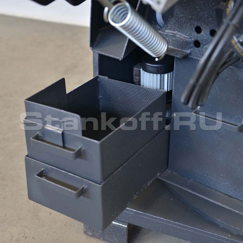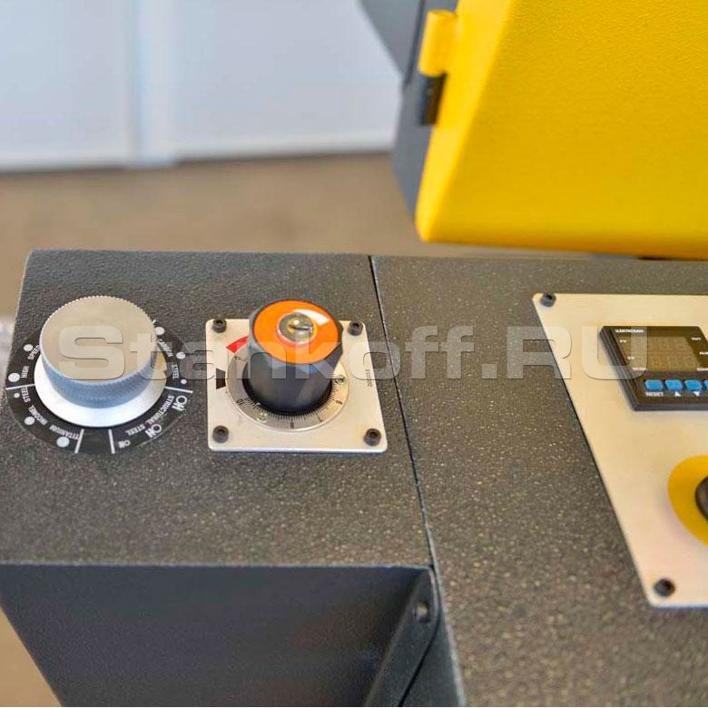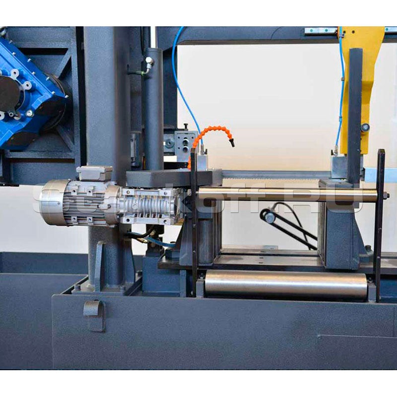 - Бесступенчатая регулировка скорости ленточнопильного полотна в стандартной комплектации. Позволяет точно настроить режимы резки под конкретную заготовку, тем самым увеличив срок службы ленточнопильного полотна.