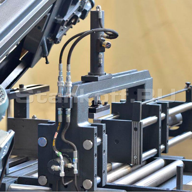 BMSO LH NC — автоматический ленточнопильный станок производства Beka-Mak. Его особенности — это наличие гидравлических тисков для автоматической фиксации и подачи заготовки в зону реза, а также возможность плавной регулировки скорости рабочей оснастки. Также на станке возможна пакетная резка материала, т.е. резка нескольких заготовок одновременно. Гидравлические тиски надёжно зажимают заготовку, удерживая ее в нужном для реза положении. Скорость полотна от 20 до 100 метров в минуту определяется работой мощного привода (2200 Вт). Станок оснащён возможностью гидромеханической натяжки рабочего полотна, а также плавной настройки хода движения пильной рамы.
