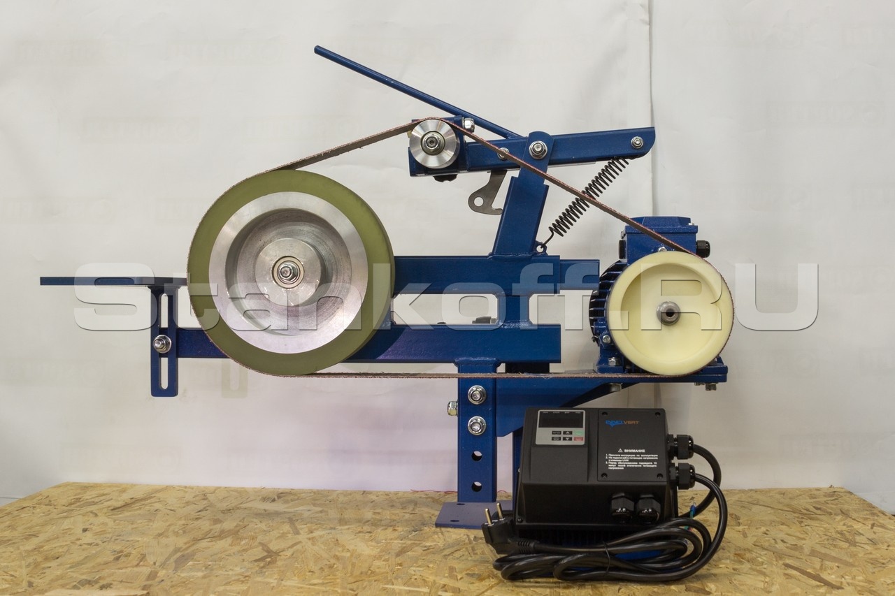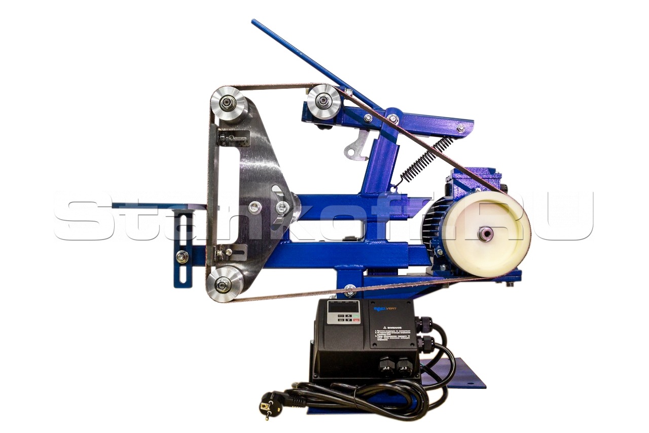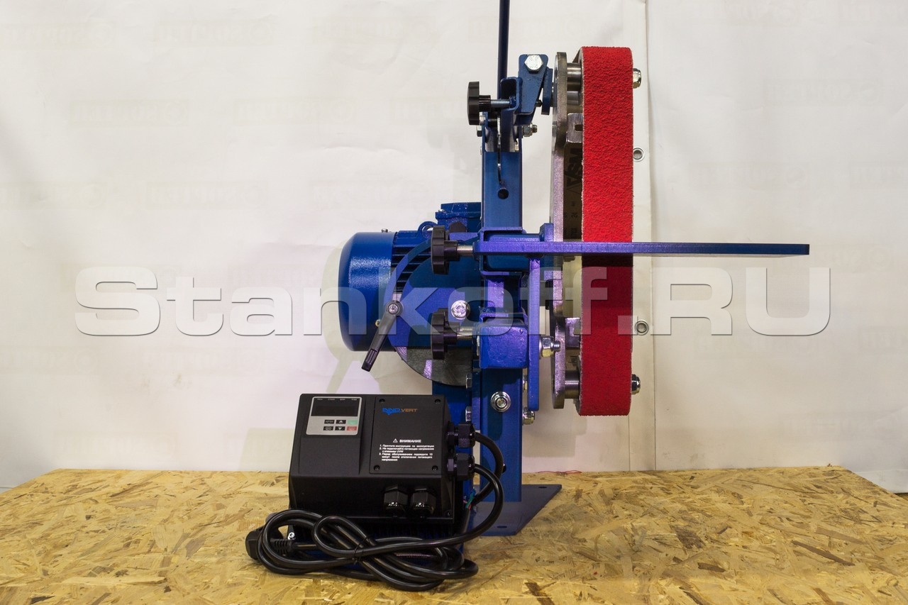 Длина ленты позволяет использовать станок в промышленных целях, для тяжелых условий эксплуатации, абразив на ленте успевает охладится, дольше служит и не перегревает обрабатываемую деталь.