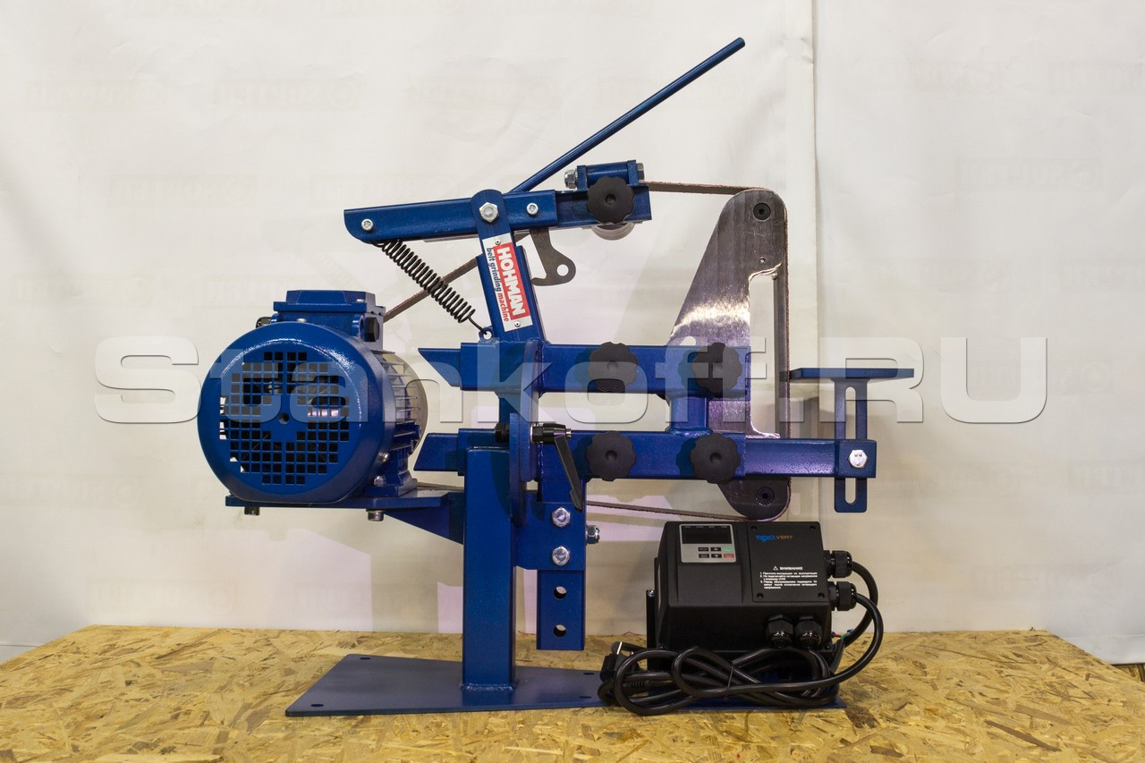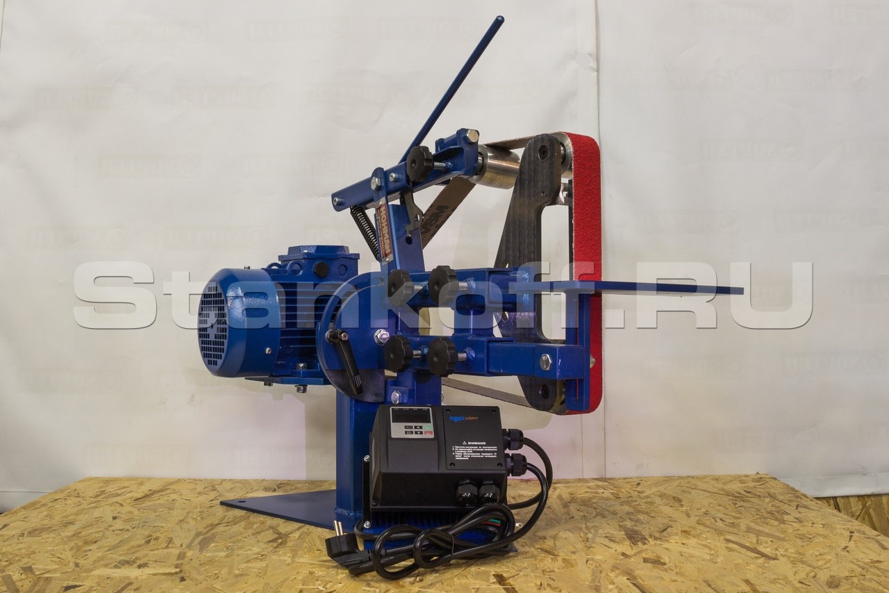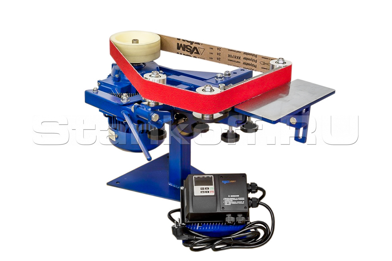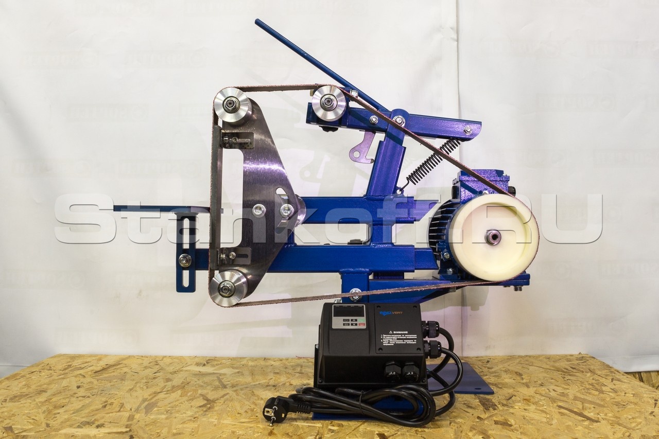 Длина ленты позволяет использовать станок в промышленных целях, для тяжелых условий эксплуатации, абразив на ленте успевает охладится, дольше служит и не перегревает обрабатываемую деталь.