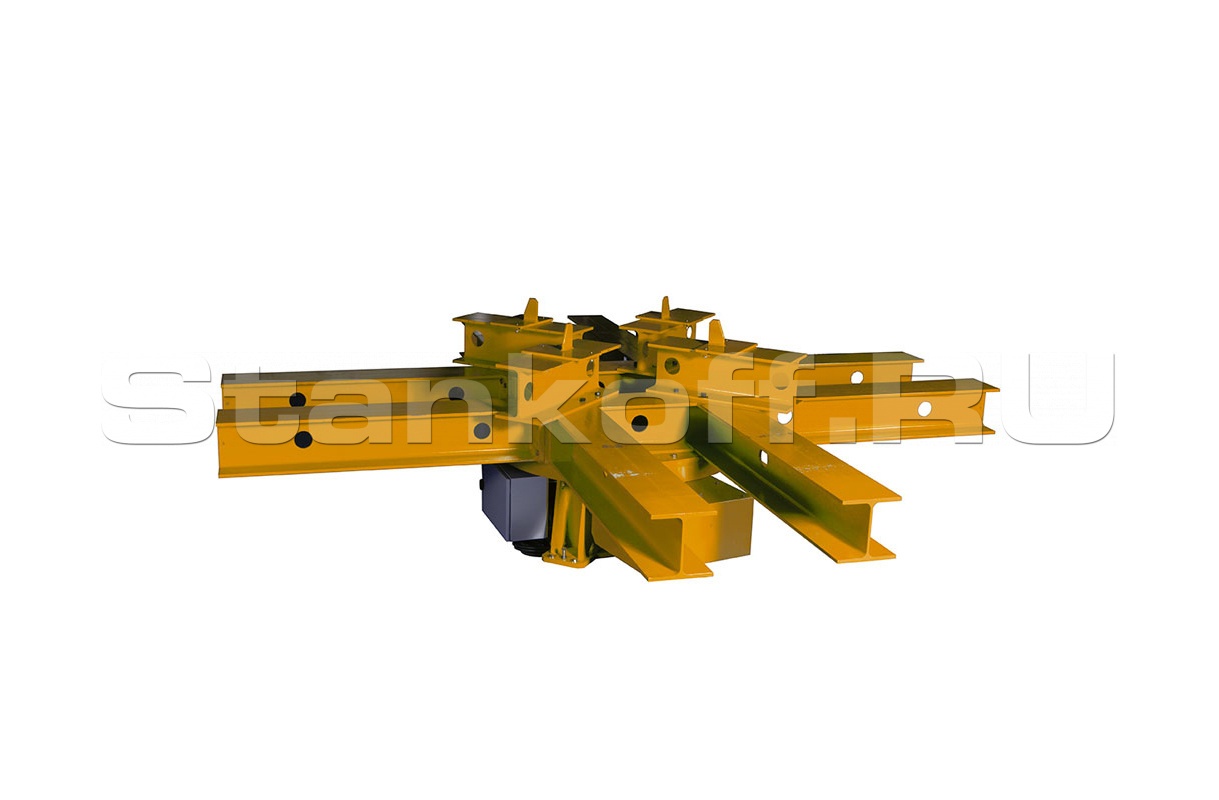 Поворотный стол имеет тумбообразную станину с плоским донным основанием, по бокам которого имеются каблуки с проушинами для крепления станка болтами к полу. Электродвигательный отсек полностью изолирован от внешнего воздействия. Обрабатываемое изделие устанавливается на стол в форме шестиконечной звезды, у которой в поверхности каждого ответвления имеются пазы для фиксации. Для вращения стола применяется двигатель переменного тока. Плавность хода обеспечивается действием высококачественного червячного редуктора.