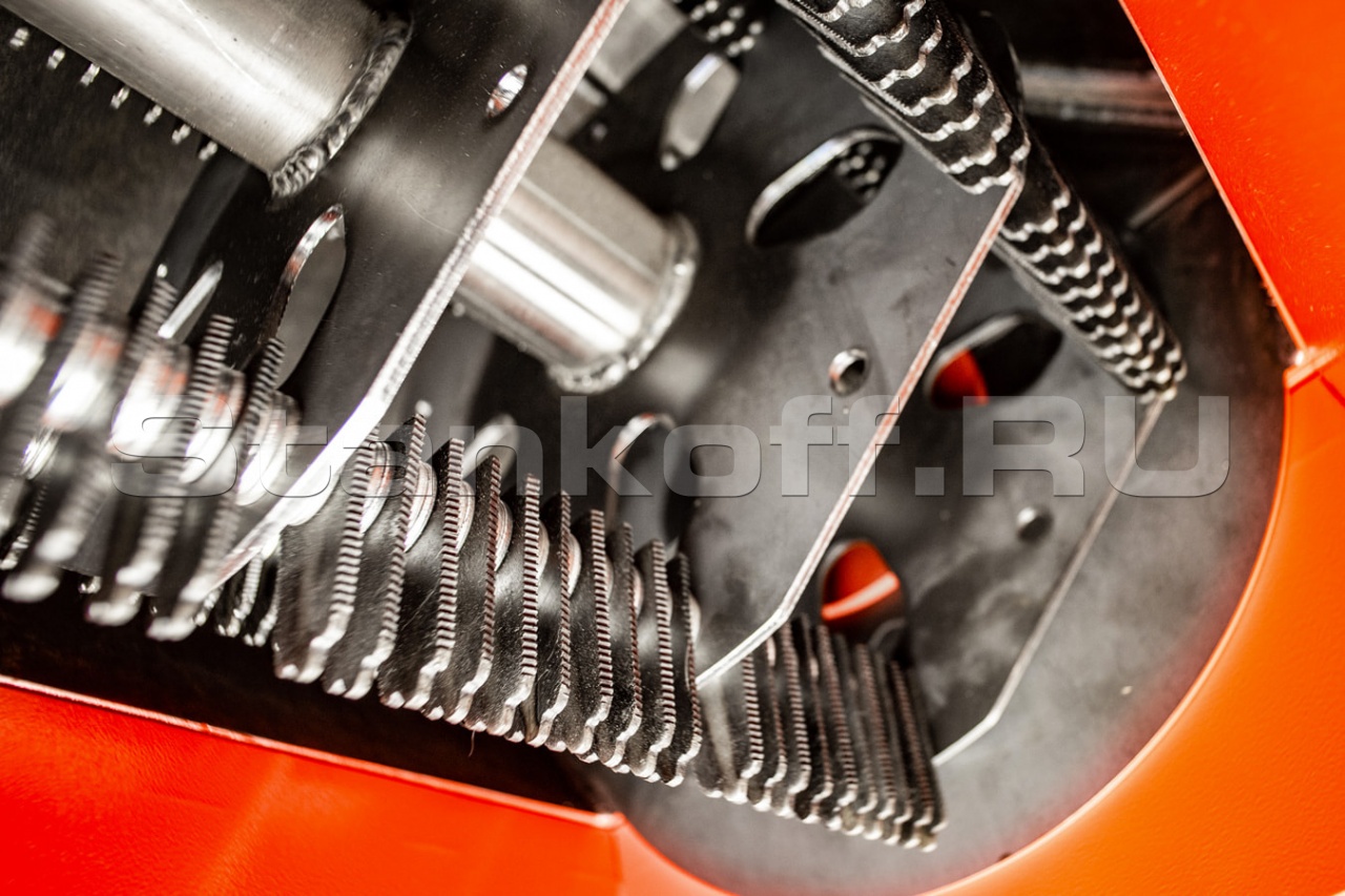 Принцип действия: Оператор загружает сырье в бункер вручную или транспортером. Сырье измельчается с помощью молотков (ножей) и пальцев. Молотки и ножи имеют зазубренную форму, что позволяет им не только дробить, но и резать сырье. Молотки сделаны из закаленной марганцевой стали, твердостью 57HRC, поэтому их износ минимален.
