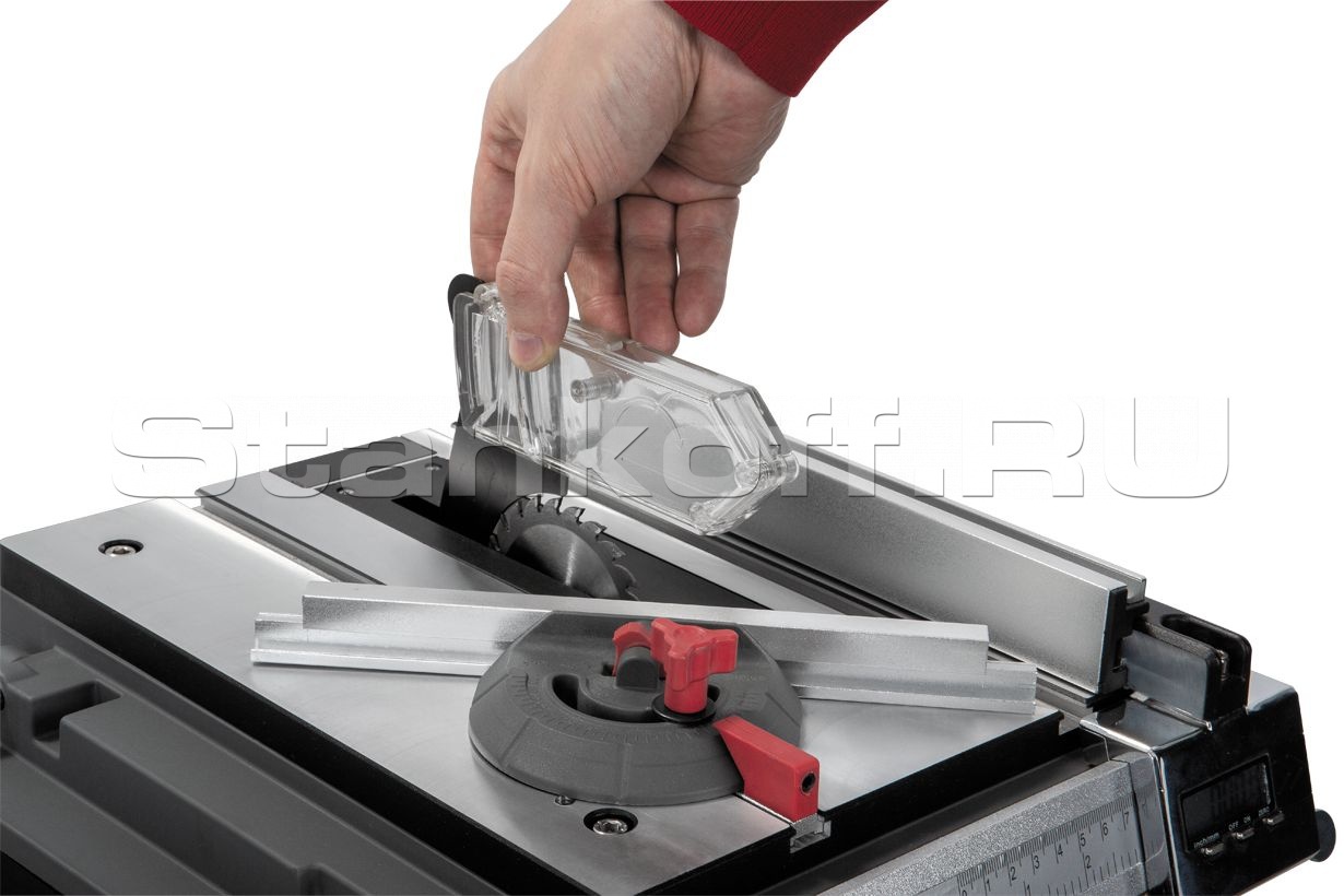 В комплект поставки входит параллельный упор с устройством цифровой индикации (УЦИ). Оно позволяет производить отсчет перемещения упора от выбранного положения (например, от плоскости диска) в миллиметрах или дюймах. После установки упора, его фиксации и пробного пропила можно внести небольшие коррективы специальным микрометрическим винтом, не ослабляя при этом основного стопора.