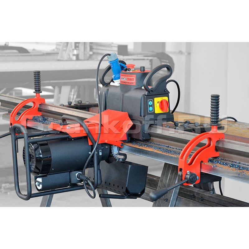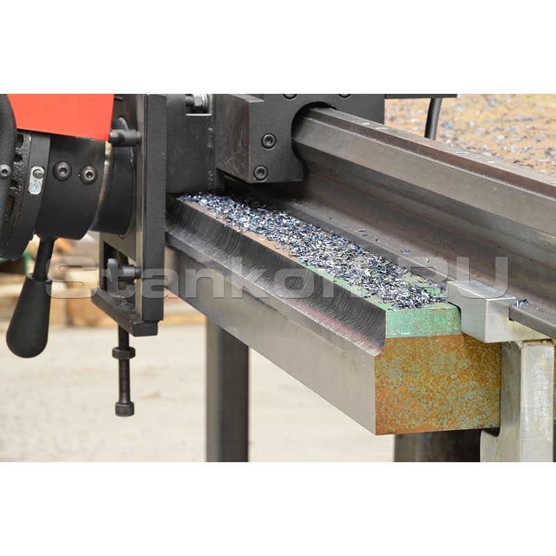Рабочее перемещение станка, производимое в обоих направлениях, позволяет сменить направление движения, не снимая станок для перенесения его в начало направляющих. Для увеличения длины обработки достаточно использовать дополнительные направляющие, которыми машину всегда можно доукомплектовать. Следует добавить, что благодаря инновационной модульной схеме, машина монтируется на листе и обслуживается одним оператором.