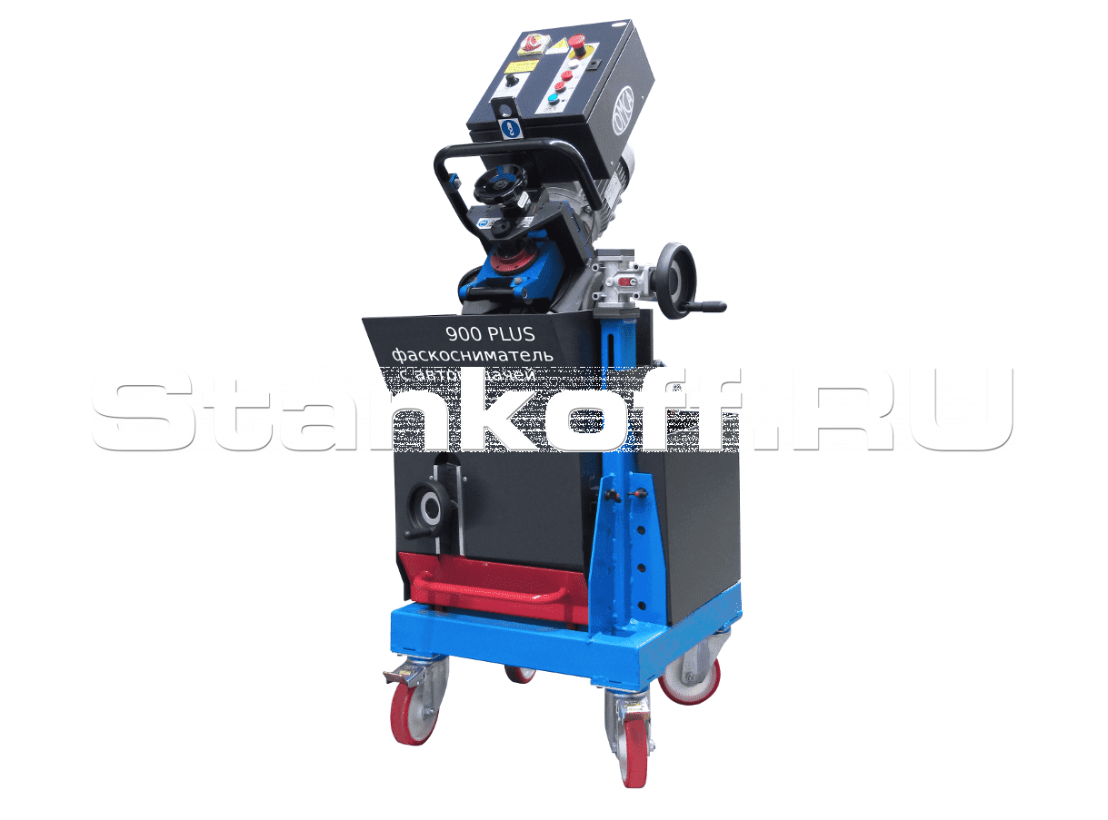 СМФ 900 PLUS - фаскосниматель с автоматической подачей предназначен для обработки кромки листовых материалов под сварку. Подача обрабатываемых заготовок малого и среднего размера в зону реза фрезы производится автоматически с помощью подающих роликов, при обработке заготовок большого размера машина самостоятельно перемещается по листу. Возможна работа без колесной базы (тележки) с подачей машины на балансире.