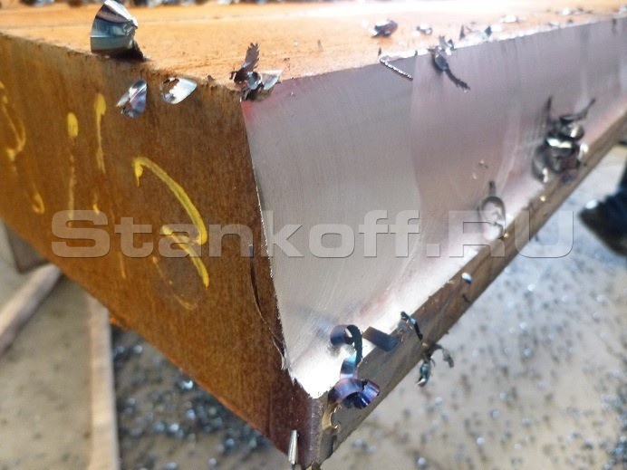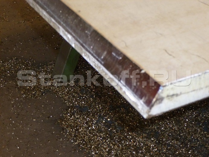 Обработка кромки производится фрезерованием, рабочий инструмент – фрезерная головка со сменными твердосплавными пластинами. Фаска J-формы ("рюмочная" фаска) обеспечивает более прочный сварочный шов и позволяет добиться более экономичного расхода сварочного материала на толстых листах.