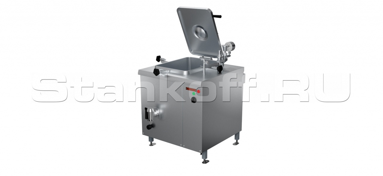 У Пищеварочного котла КЭ-100К варочный сосуд имеет прямоугольную форму. Это создает дополнительное удобство для варки крупных кусков мяса: говядины, свинины, конины (применяется в перерабатывающих производствах).