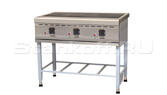 - Рабочая поверхность и облицовка плит изготовлены из нержавеющей стали.