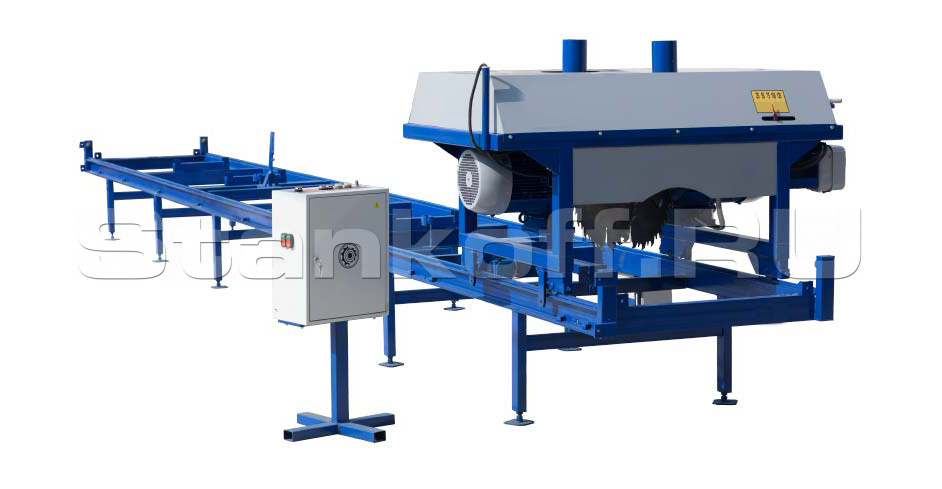 Станок для тонкомера Стилет МТД-4 обрабатывает тонкомерное бревно за два прохода каретки. При первом проходе получается лафет, две необрезные доски и два горбыля. Распилив лафет обратным ходом каретки получится брус, две обрезные доски и два горбыля. Необрезные доски в дальнейшем можно так же переработать на станке, уложив их стопкой вместо бревна, получатся обрезные доски и по бокам штакетник или брусок. Скорость подачи каретки регулируется плавно с помощью ПЧ. Станок Стилет МТД-4 оснащен эл. механическим зажимом бревна.