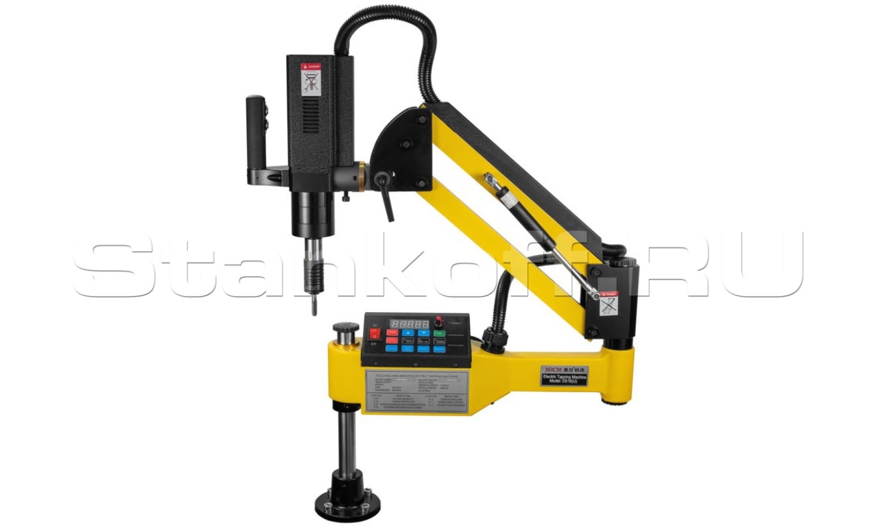 Резьбонарезной манипулятор для быстрого, качественного и удобного нарезания резьбы от М3 до М16 Нарезание резьбы в сквозных и глухих отверстиях заготовок из стали, чугуна, цветных сплавов и пластиков. Американская технология GOSYNC: силовой привод от высокопроизводительного синхронного сервопривода с планетарным редуктором. Ручной и автоматический режимы работы позволяют быстро, точно и эффективно нарезать резьбу в любой заготовке. Программирование скорости прямого и обратного вращения, крутящего момента, глубины и шага нарезаемой резьбы.